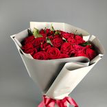 Пожалуй, первая любовь такая же яркая, незабываемая, как этот букет из 29 сочных алых роз в элегантной матовой пленке серого цвета.