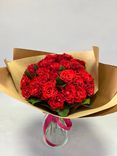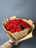 - Нежность и элегантность: Крафтовая упаковка подчеркивает красоту каждой розы, придавая композиции естественный шарм.