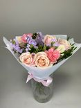 Букет из роз, гвоздик и статицы «Секрет сердца»