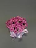 Шляпная коробка с 15 розовыми кустовыми розами — идеальный способ выразить чувства через изысканный и элегантный подарок. Нежные розы, расположенные в стильной коробке, создают атмосферу романтики и изящества, что делает эту композицию прекрасным выбором для любых торжеств.