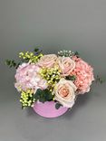 - Долговечность: Розы и гортензия прекрасно сохраняют свежесть, радуя глаз долгое время.