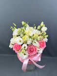 Букет из роз и лизиантусов в коробке «Танцуй со мной»