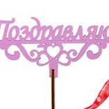 - Топпер «Поздравляю», 25x8 см, сиреневый - 1 шт