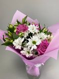 Эффектная, но в то же время легкая композиция делает этот букет из роз, альстромерий и хризантемы прекрасным подарком на романтическое свидание, значимую личную годовщину или День рождения. Он порадует как совсем юную девушку, так и утонченную романтичную натуру любого возраста.