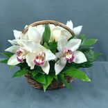 Композиция в плетеной корзине с семью белоснежными орхидеями и рускусом – это воплощение элегантности и изысканности. Орхидеи, символ утонченности и благородства, прекрасно смотрятся в окружении зелени и сплетения ивовых веток, придающих композиции завершенный вид. Букет из 7 орхидей в корзине - экзотическая, но милая аранжировка для самой-самой!