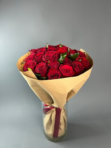 Стандартный букет: 25 красных роз — классический выбор, символизирующий страсть и настоящую любовь.
