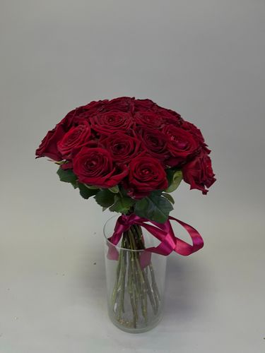 Стандартный букет: 25 красных роз — классический выбор, символизирующий страсть и настоящую любовь.