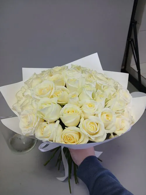 Букет из 51 белой розы — дарят на юбилей, свадьбу, для признания в трепетном отношении или торжественного события. Белые розы универсальны, поскольку смотрятся как в классическом оформлении, так и в дизайнерской упаковке, а сама композиция выглядит статусно. Значение цвета - искренность, забота, нежность.