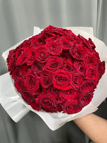 Букет из 101 розы - объем, который сразу бросается в глаза, но не выглядит чрезмерным, как в случае с 151 или 201 розой. Такой букет удерживает баланс между роскошью и удобством: он солиден по размеру, но остается транспортабельным и удобным для вручения.