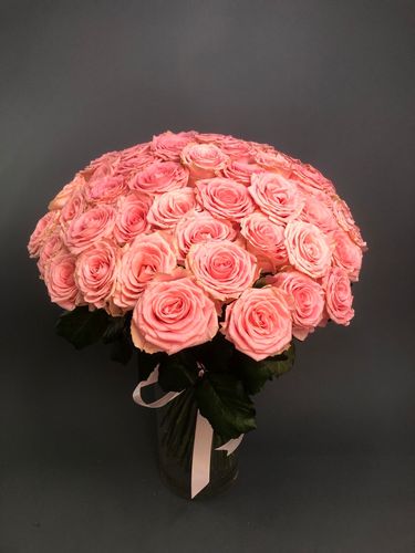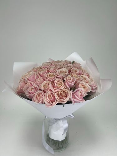 Розовая и белая композиция символизирует нежность и восхищение. Букет из розовых роз подойдет молодой девушке или близкой подруге.