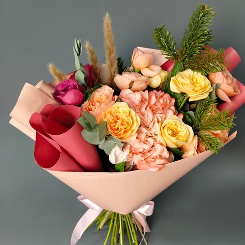 Идеальный букет должен быть уместным, стильным и отражать правильный настрой. Если вы дарите букет от своего имени, цена на него не должна быть слишком большой, ведь потом коллеге придется «отдаривать» и платить не меньшую стоимость для вашего букета. Иной вопрос, если вы покупаете букет коллеге всем офисом, в таком случае вы можете скинуться и приобрести необычную авторскую композицию. Наши флористы готовы собрать букет по вашему описанию, картинке или фото. А также помочь с составлением композиции, которая может выразить больше теплых чувств.