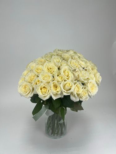 Один из фаворитов — из 25 или 51 роза в стильной матовой или крафтовой упаковке. Это универсальный вариант для торжеств.