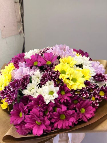 Букет из белых или желтых хризантем станет символом уважения и преданности. Эти цветы долго сохраняют свежесть и радуют своей стойкостью.
