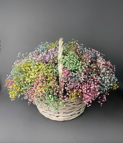 Голубые гипсофилы — это редкость в мире флористики. Их необычный цвет выделяет букеты среди традиционных цветочных композиций, привнося нотку свежести и оригинальности. Такой букет надолго запомнится получателю.