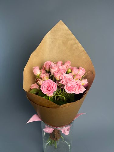Сколько стеблей нужно, чтобы получить большую композицию? 9 кустовых роз уже выглядят объемными, благодаря большому количесву бутонов.