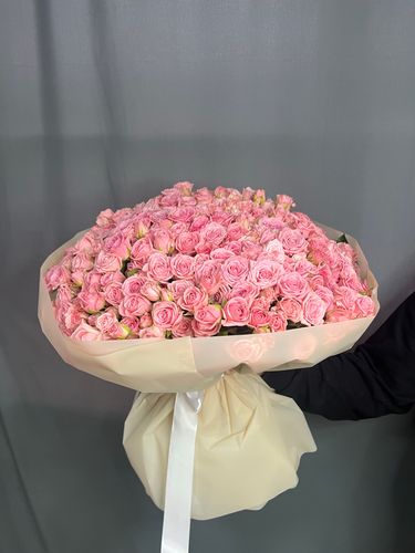 Огромные букеты из кустовой розы выглядят роскошно из-за разных форм и размеров бутонов. Хорошим решением будет добавить к такому букету облака белой гортензии. Вы можете заказать букет с сочетанием любых цветов, а также дополнительно выбрать открытку или небольшую мягкую игрушку, как дополнение.