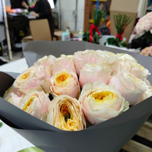 Кустовые пионовидные розы доступны круглый год благодаря современным технологиям выращивания. В теплицах поддерживаются оптимальные условия, позволяющие цветам цвести вне зависимости от времени года.