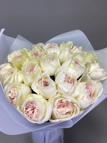 Белоснежные кустовые пионовидные розы — символ чистоты и утонченности. Их используют для создания свадебных букетов и романтических композиций.